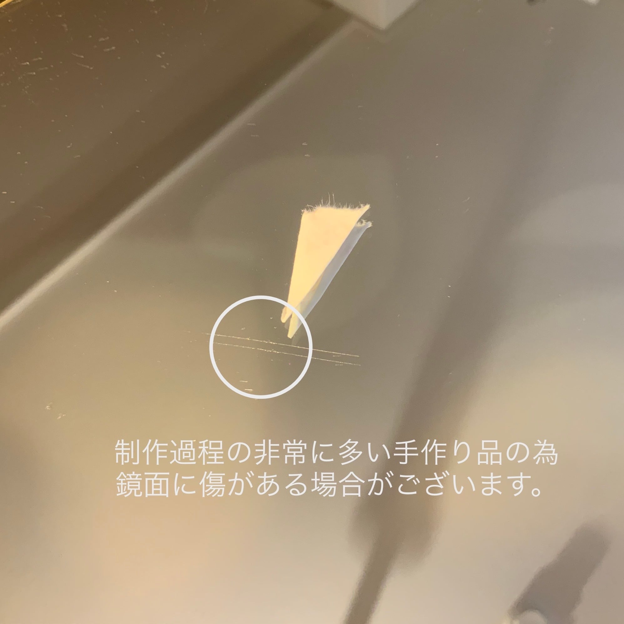 ※縁や鏡面に制作の行程の中で締めつける際にできる